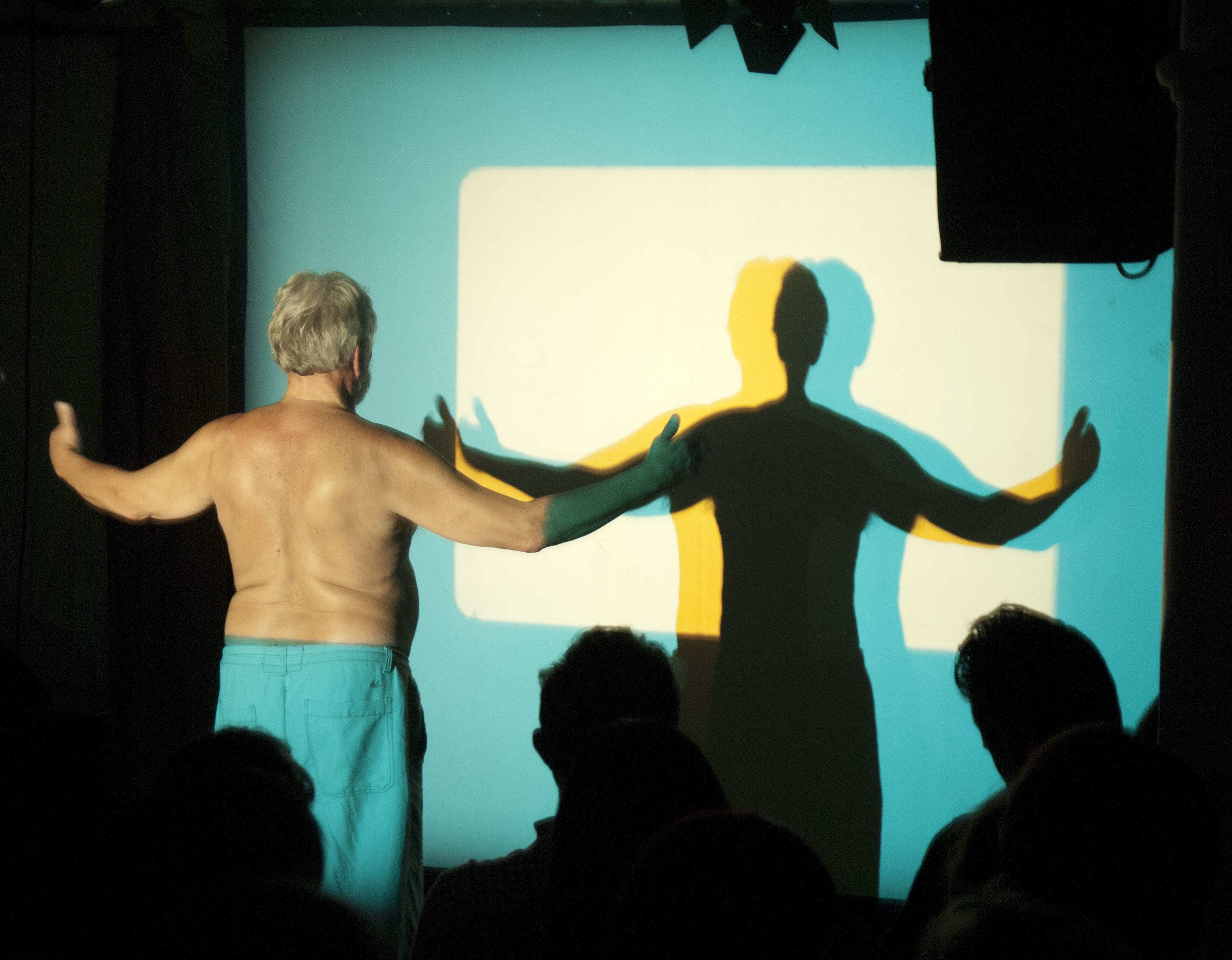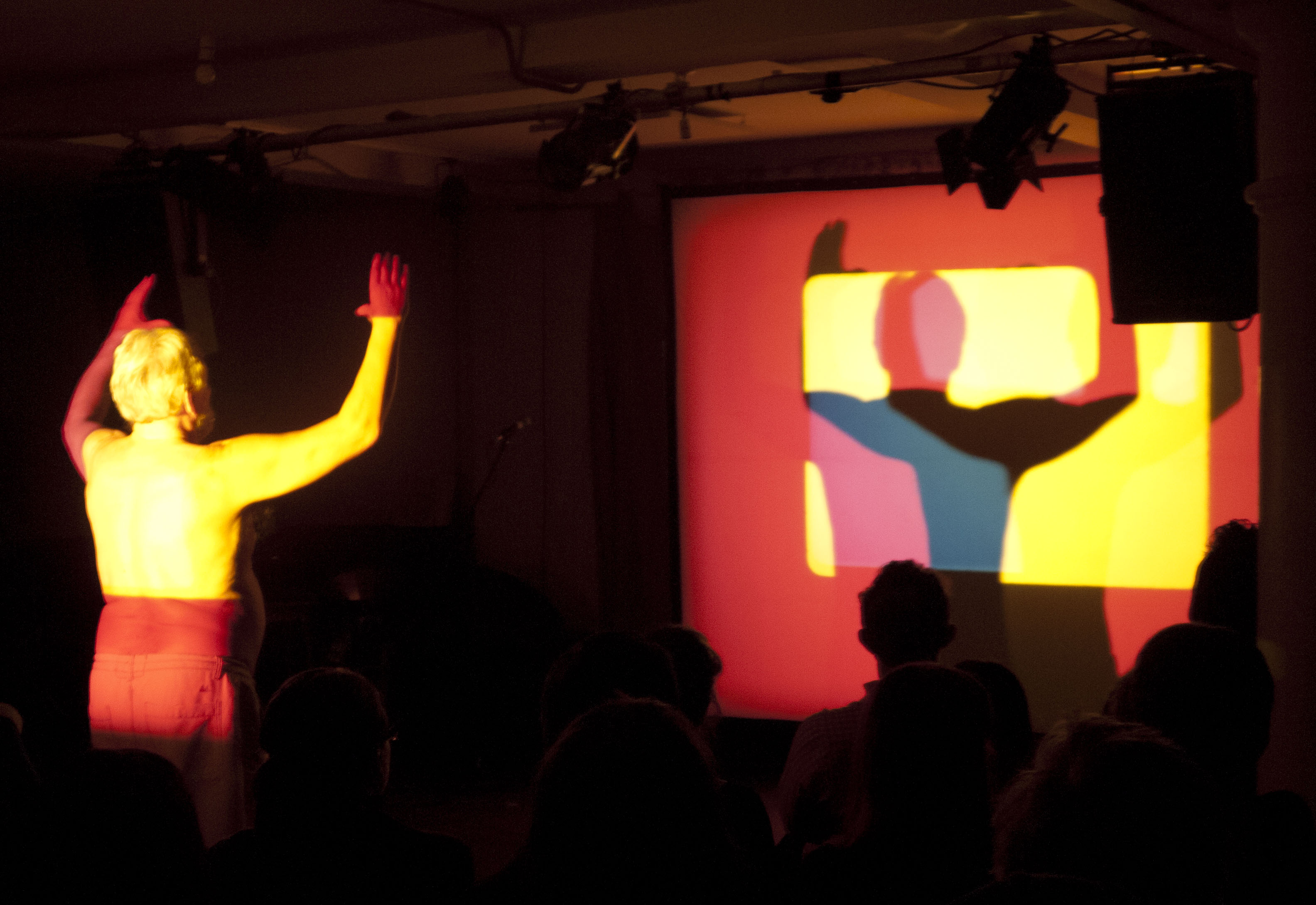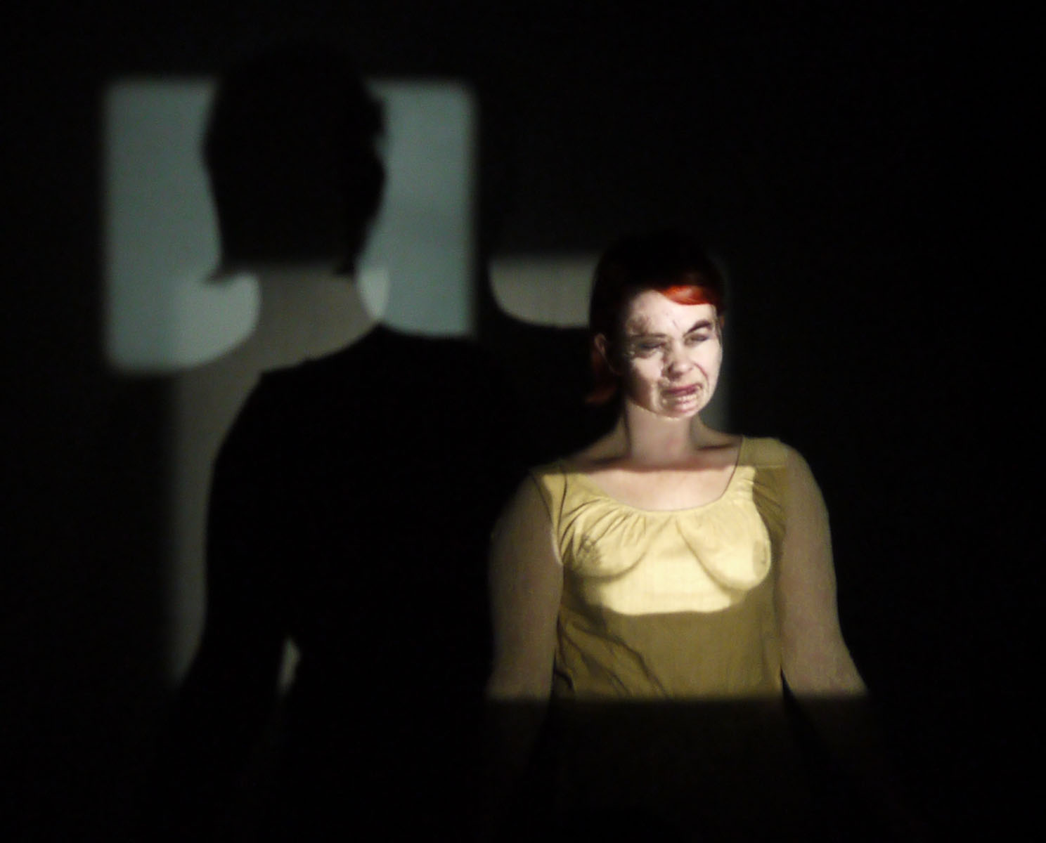 In Sally Golding’s Face of An Other faces and torsos are precisely projected onto the artist’s face and body to produce what at times looks like a kind of virtual veil, while at other moments seems to transform the artist’s face in more or less grotesque ways. The illusionism of the work has been transformed in a more complex and abstract way in her more recent performances, where the image is pulverised by the use of strobe light and other elements that supplement the projected images.