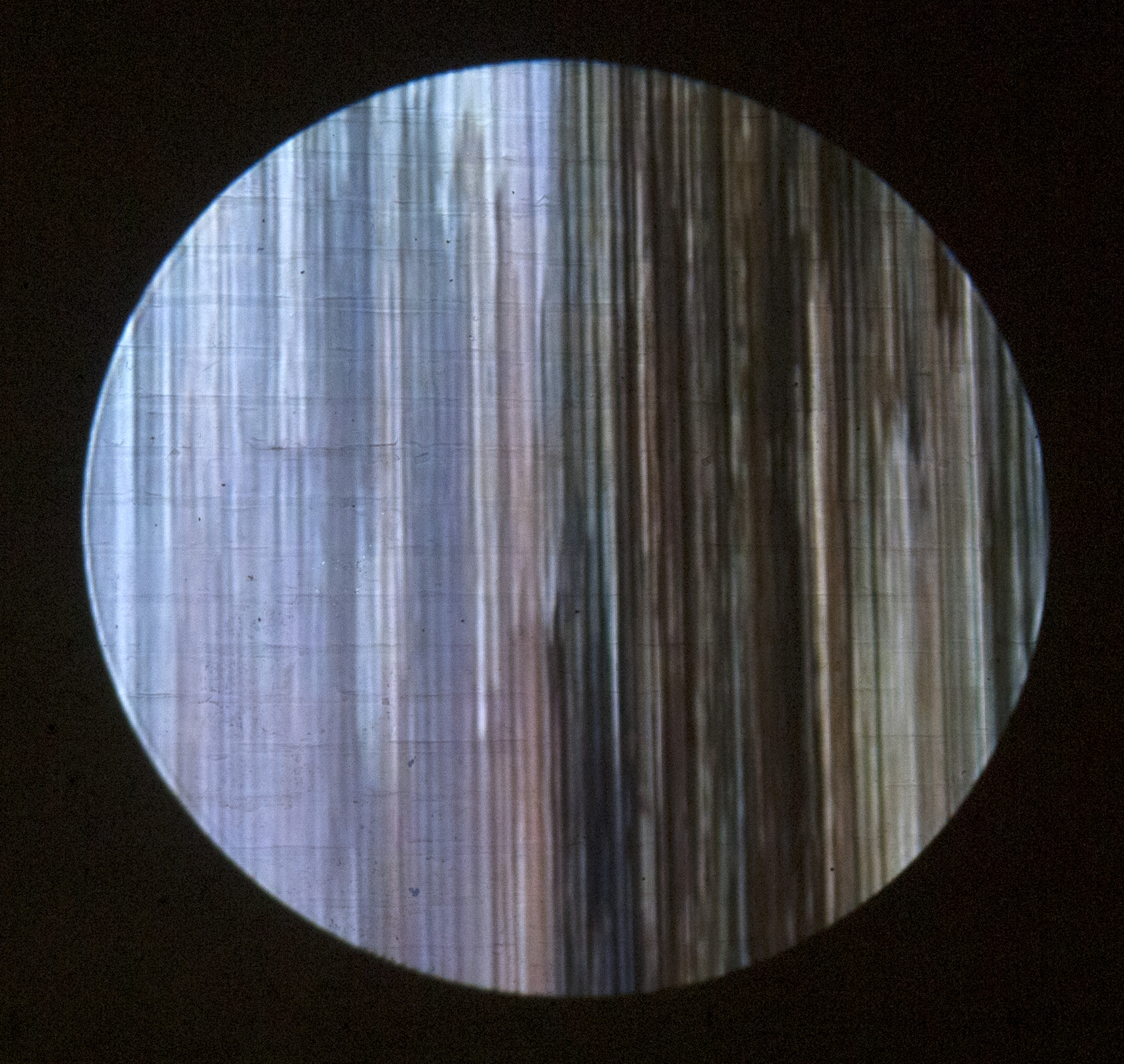 In a similar but different way to C-Trend, the work isolates and foregrounds the presentational form of the video image as compounded from lines. In cathode ray TVs, the image is scanned onto the screen in a series of left to right, top to bottom lines. In other words it is inherently linear. In modern flat screens and projectors, the pixels are always ‘on’, and their brightness is controlled by the rapid variation in the voltages applied to them, in order to change the composition of the image over time, ie to generate an apparently moving image. However, the composition of the image is still linear, and this is what Polmeer’s piece exploits.