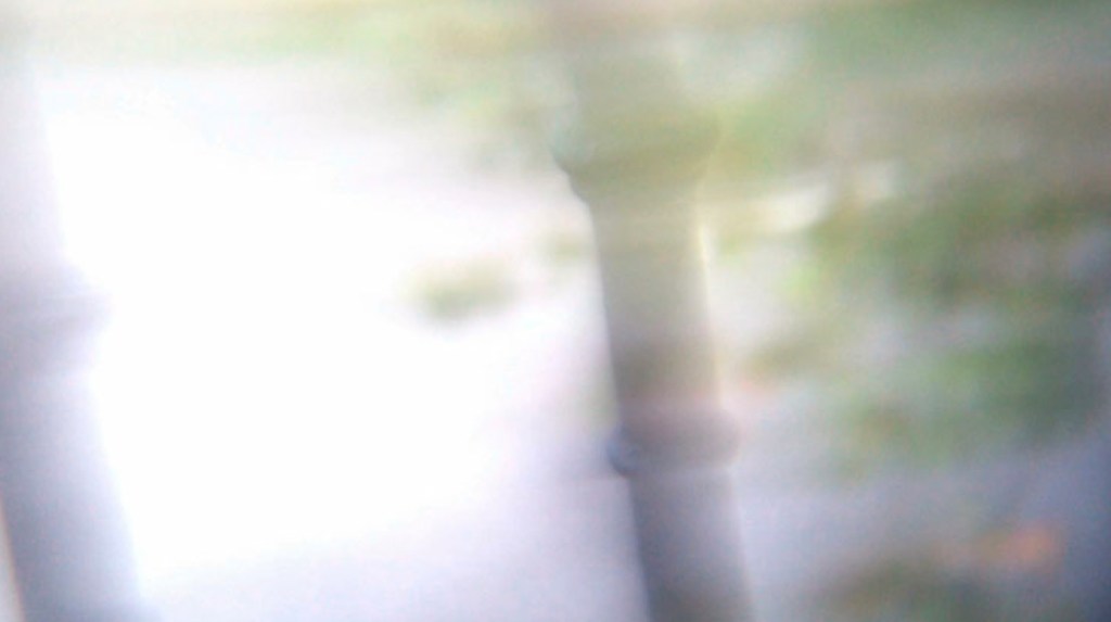 Video ‘Smear’ is a kind of afterimage, in which rays from bright light fall directly onto the chip, overloading the pixels (there is another analogy here with human vision, in that the rhodopsin in the rods and cones on the retina, which form a fixed array not unlike a pixel grid, become temporarily saturated, and therefore unable to function, when overexposed to light). Smear is more often seen in cameras that use a CCD sensor and a global shutter, which exposes the whole chip in a single flash, but is in any case a key feature of Silla en Balcón (2013)
